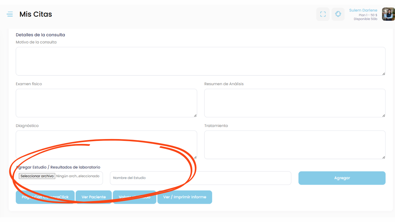 Además, podrás subir documentos relacionados con la atención, como resultados de estudios o informes médicos.
