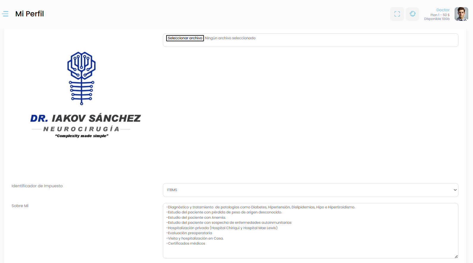“En la sección de Datos Profesionales, podrás cargar el logotipo de tu consultorio o marca profesional, que se utilizará en documentos y reportes generados desde el sistema.