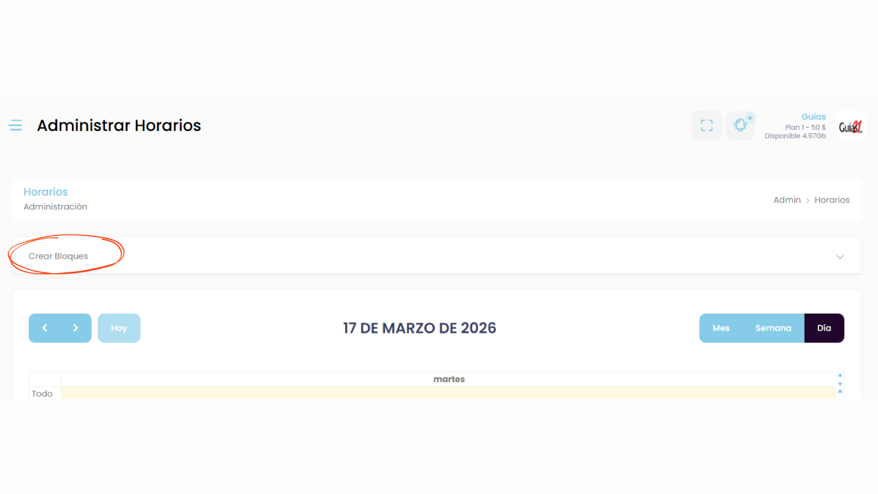 Desde la opción Crear Bloques, puedes definir los horarios en los que atenderás pacientes.