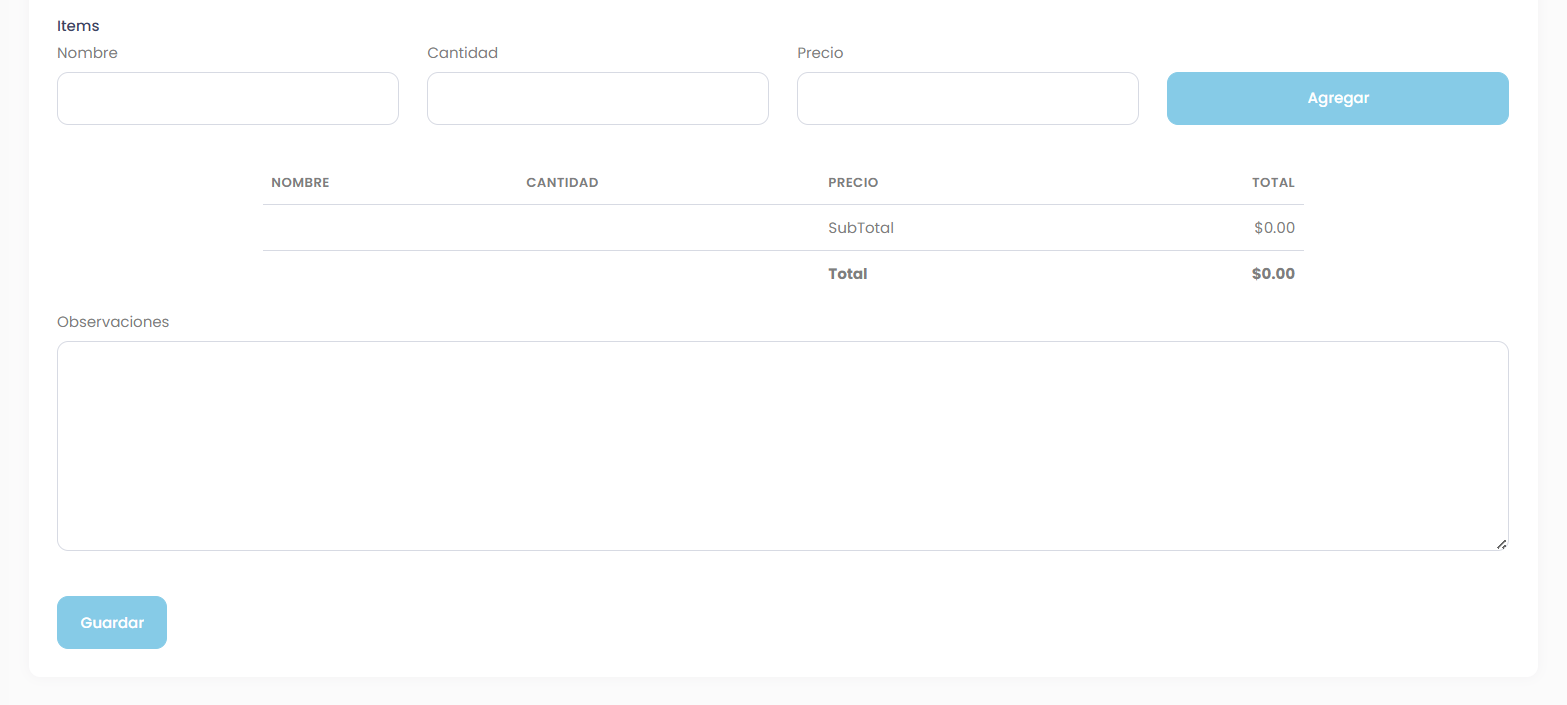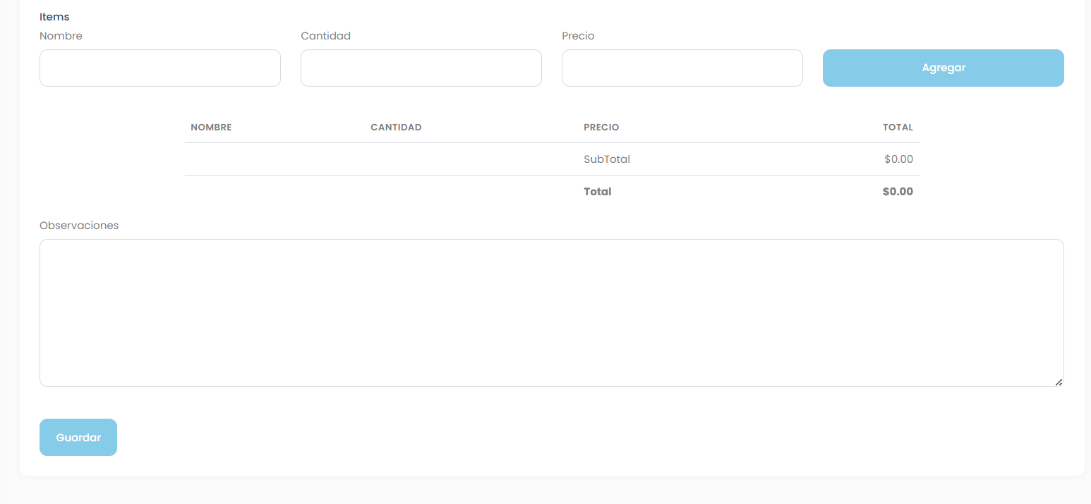 - crear una nueva cotización