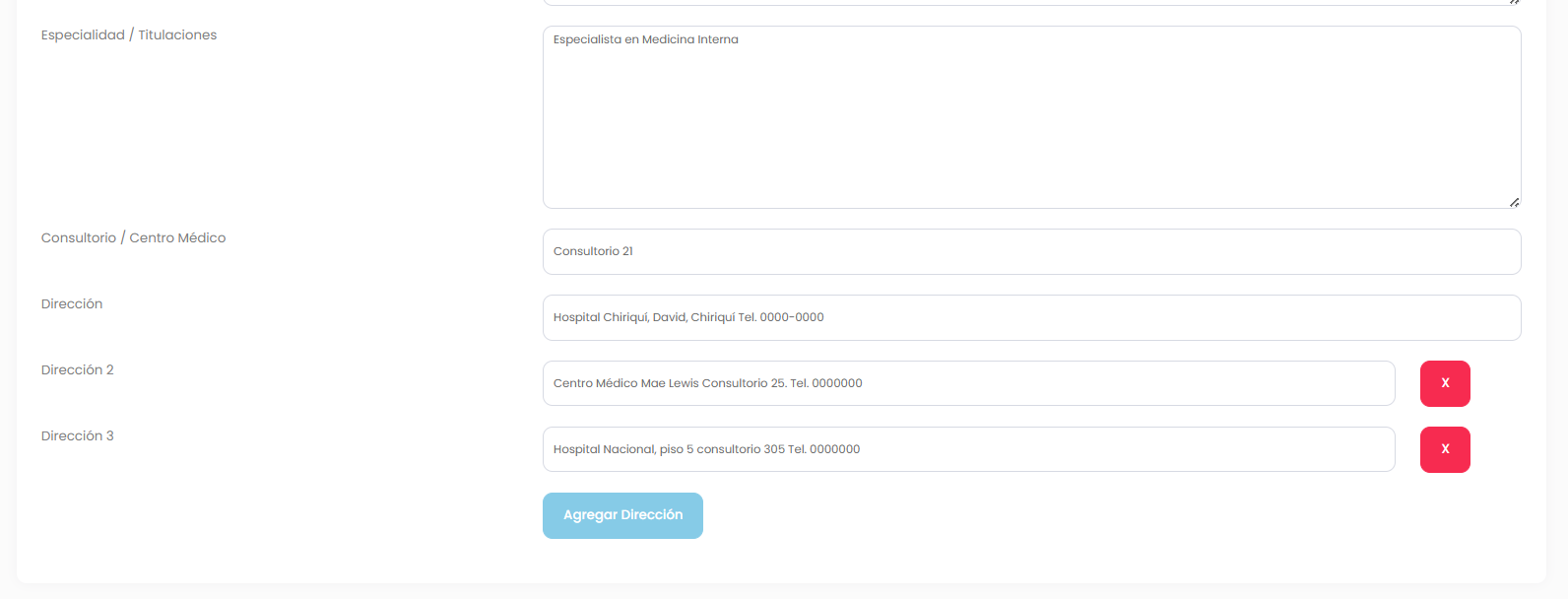 - Dirección o direcciones donde atiendes”