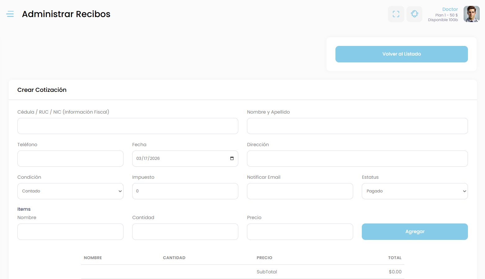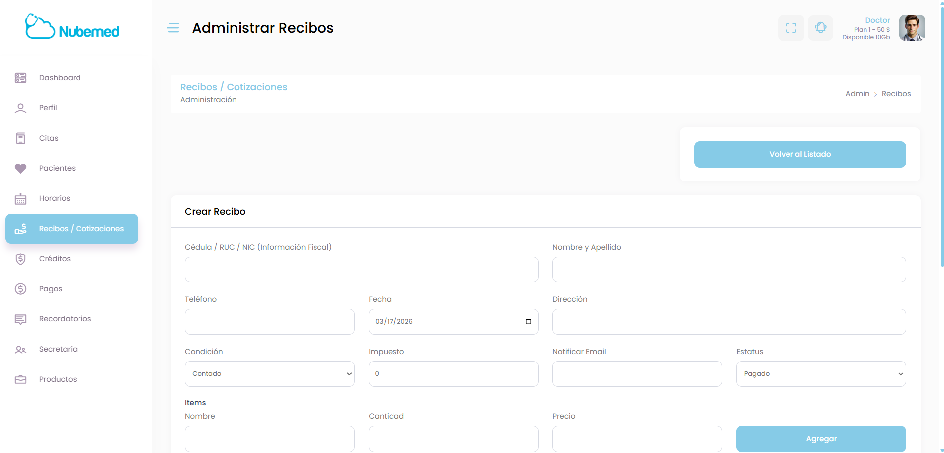 En este módulo de Nubemed podrás gestionar los recibos y cotizaciones de tus consultas o servicios médicos, manteniendo un control claro de los pagos de tus pacientes.
