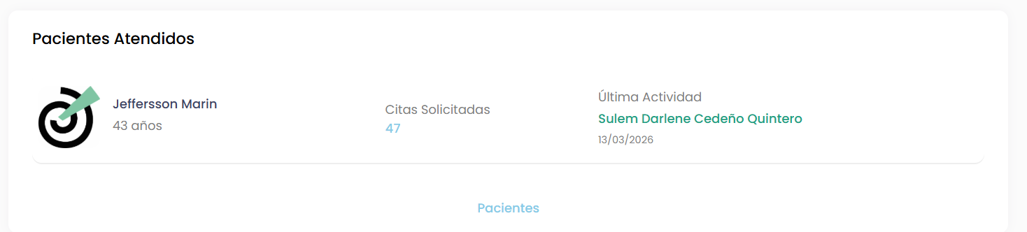 Más abajo encontrarás la lista de pacientes atendidos o con actividad reciente.